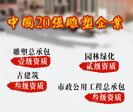 河北鑫特園林建筑雕塑有限公司成立于2002年,是中國雕刻之鄉(xiāng)——曲陽縣的一家實(shí)力雄厚的大型雕塑公司,公司占地面積50000+平方米,年產(chǎn)值超過億元,具有雕塑總承包一級(jí)資質(zhì)、古建筑三級(jí)資質(zhì)、市政公用工程施工總承包三級(jí)資質(zhì)。